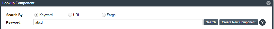After you have performed Step 1: Access the “Lookup Component” Window, select the Keyword option either on the Lookup Component window or on the Components tab on the Global Component & License Lookup tab.