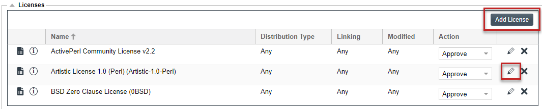 Continue with Step 2: Create the Custom License for details on how to create the license. Once you successfully save the custom license, it is added to the Code Insight database. Additionally, it is automatically added to the License dropdown list on the Edit (or Add) License and Usage Criteria window and is in focus for your immediate selection. For more details about fields on this window, see Fields Specific to Maintaining License Policies.