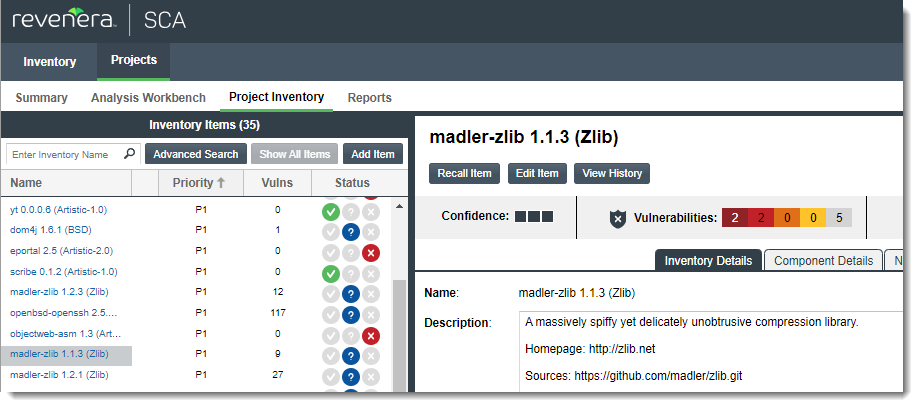 These counts exclude any vulnerabilities that were suppressed globally for the given component version. Additionally, while the counts for a component version are generally the same as the vulnerability counts for an inventory item associated with the component version, the inventory item counts can be fewer if vulnerabilities were suppressed for the item at the project level.