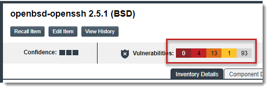 noteThe bar graph is visible only if vulnerabilities exist for the inventory item.