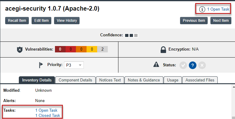 Click the x Open Tasks link either in the upper right corner of the Inventory Details pane or in the Tasks section on the Inventory Details tab.