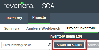 Code Insight provides the Advanced Inventory Search dialog that enables you to filter the list of published inventory items to those of interest based on many available criteria—inventory attributes, selected license attributes, as well as associated security vulnerabilities, tasks, Docker layers, and security alerts. In this way, you can easily focus on only those inventory items in which you are interested within the list of published items. The following procedure shows you how to access and use this dialog.